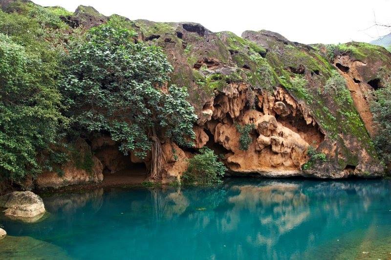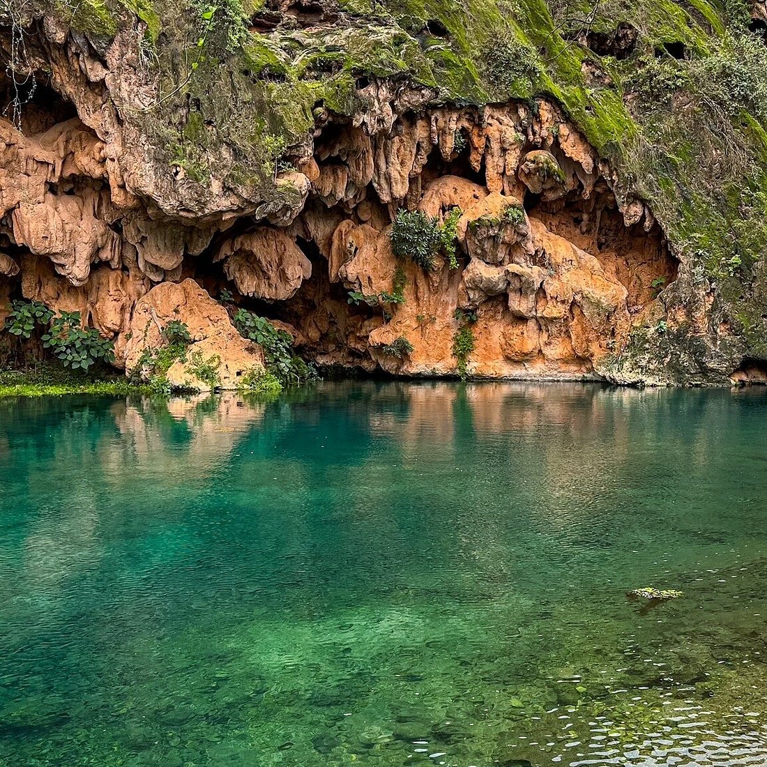 Visit the turquoise springs at the base of the mountains, a favorite spot for local families.