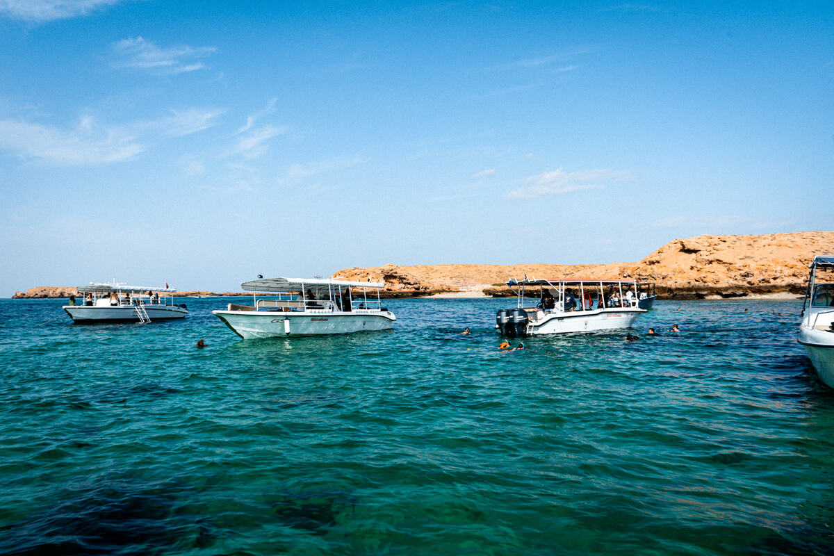Board a private boat for a cruise into the Gulf of Oman. Watch for resident pods of dolphins before snorkeling in the crystal-clear waters of a secluded bay.